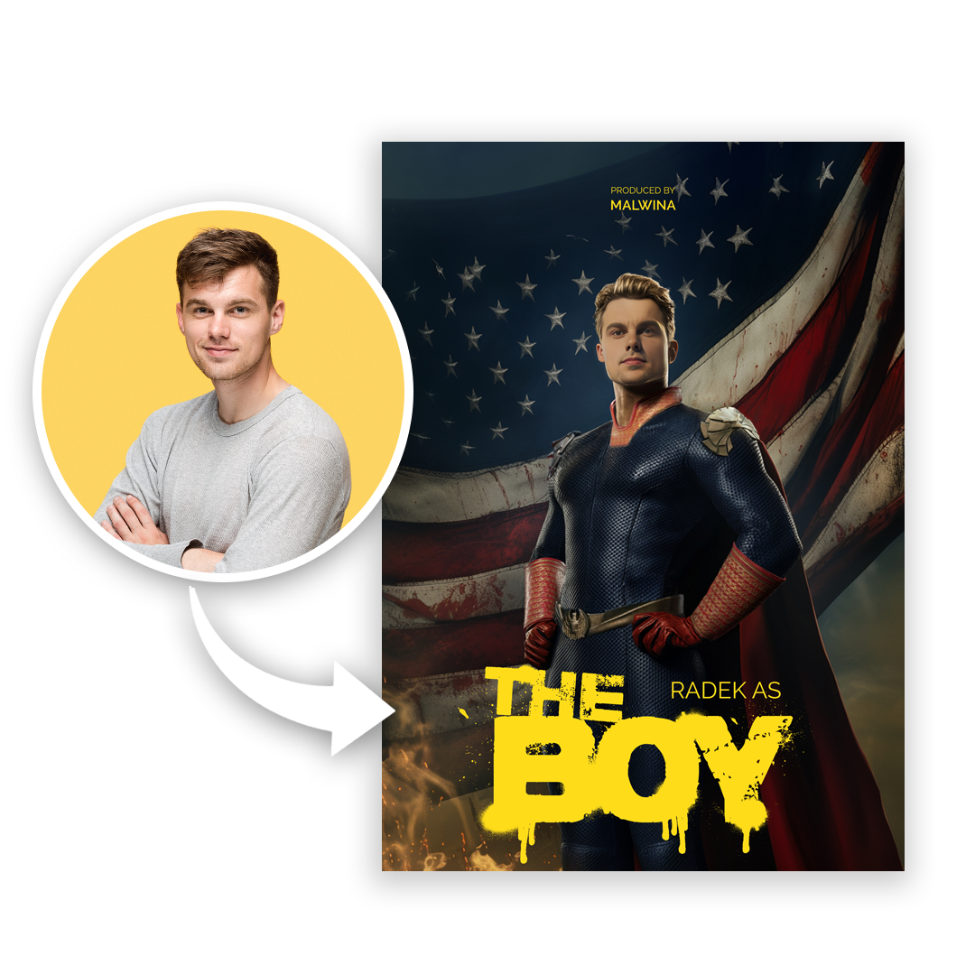 - Εξατομίκευση: Επικολλούμε το πρόσωπο του φίλου σας στο σώμα του Homelander, το οποίο δημιουργεί ένα μοναδικό και προσωπικό δώρο.