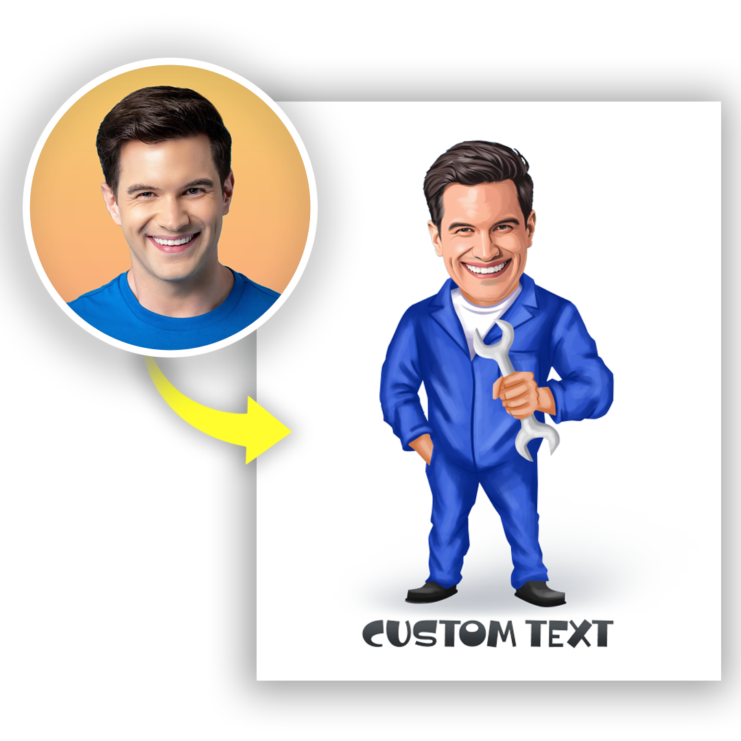 - Εξατομίκευση: Μετατρέπουμε τη φωτογραφία σας σε καρικατούρα του οικοδόμου, δημιουργώντας μια μοναδική εικόνα που αποτυπώνει τέλεια τόσο τη σκληρή δουλειά όσο και τον χαρακτήρα του παραλήπτη.