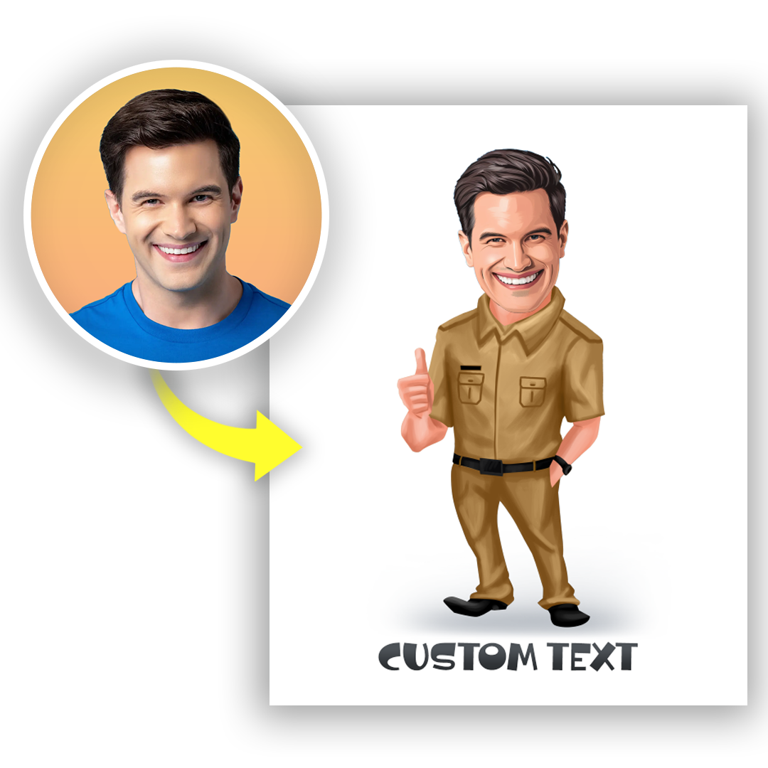 • Εξατομίκευση: Θα μετατρέψουμε τη φωτογραφία σας σε καρικατούρα ενός αστυνομικού, δημιουργώντας μια μοναδική εικόνα που αποτυπώνει τέλεια τόσο τον επαγγελματισμό όσο και το χιούμορ του ατόμου.