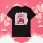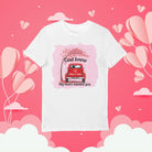Grafika przedstawia uroczy, czerwony samochód pod kwitnącym drzewem, otoczony drobnymi serduszkami, a całość dopełnia napis: „God knew / My heart needed you”. Na aucie można umieścić imiona oraz datę, dzięki czemu koszulka staje się piękną, osobistą pamiątką.